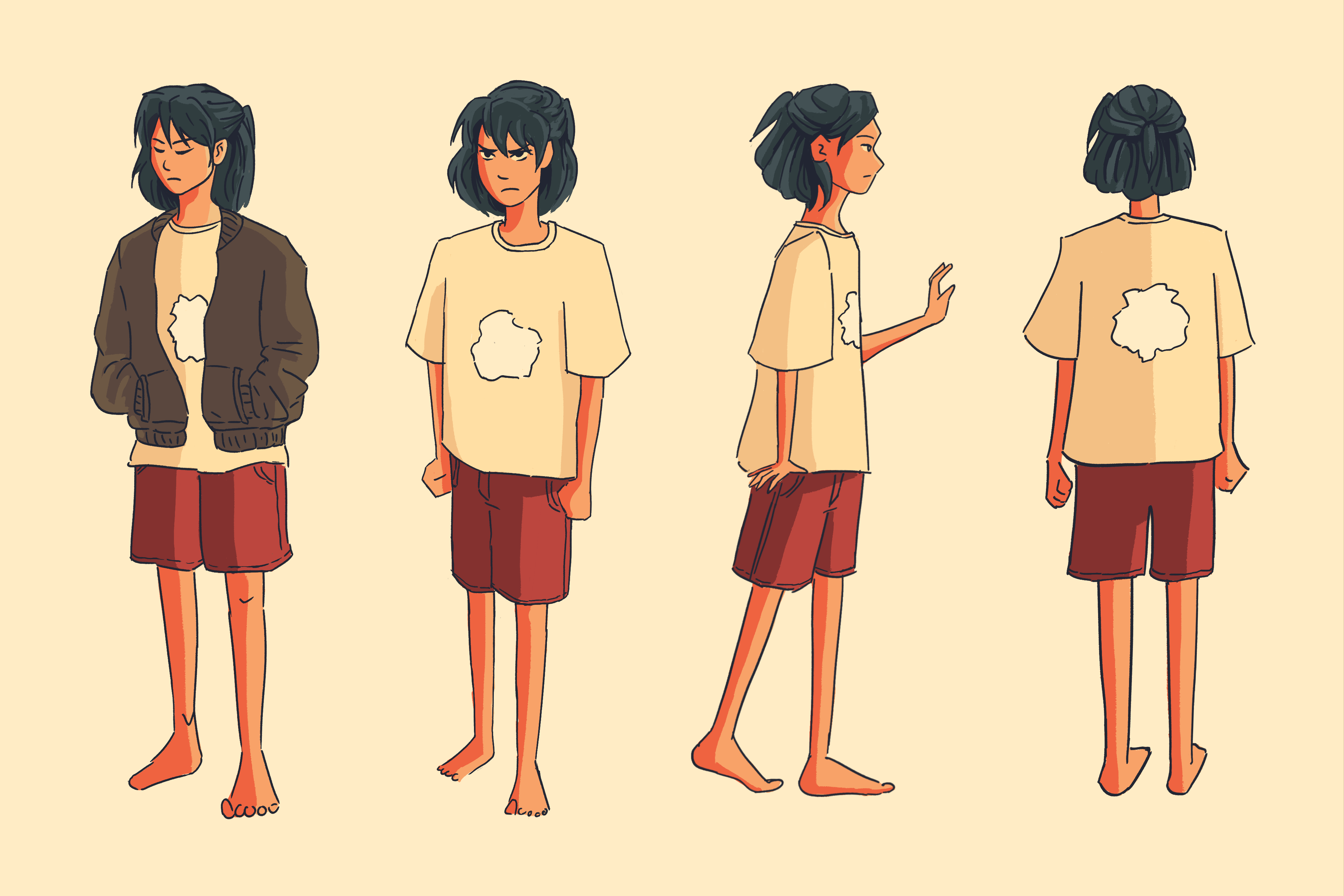 I designed this character to have a visibily missing part of her body. During her journey, she finds something that fills this missing part, but leaves her visibily empty.